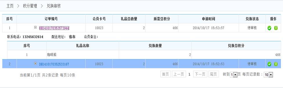 2.通過審核:點(diǎn)擊通過審核后,會員將得到禮品 將會扣減會員積分 此次的兌換完成(兌換成功)