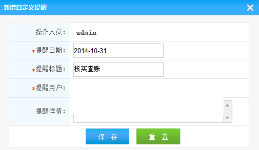增加自定義提醒(提醒日期、提醒標題、提醒人、提醒詳情)