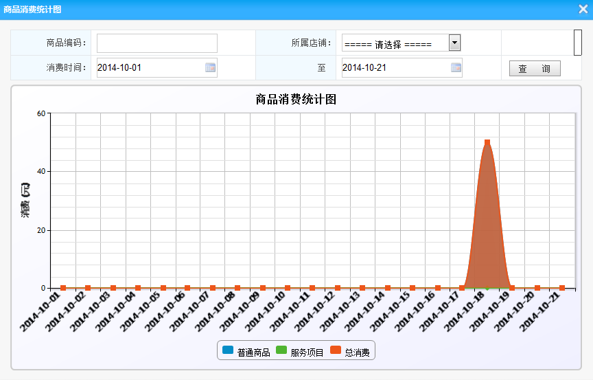 4.列表:雙擊商品編碼可以查詢商品消費(fèi)詳情