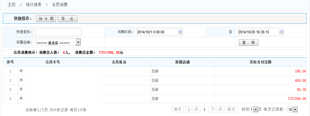 會(huì)員消費(fèi)統(tǒng)計(jì):查看會(huì)員消費(fèi)記錄