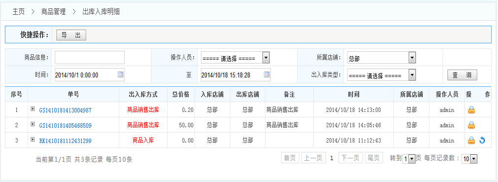 時(shí)間段 出入庫(kù)類型等進(jìn)行分類查詢