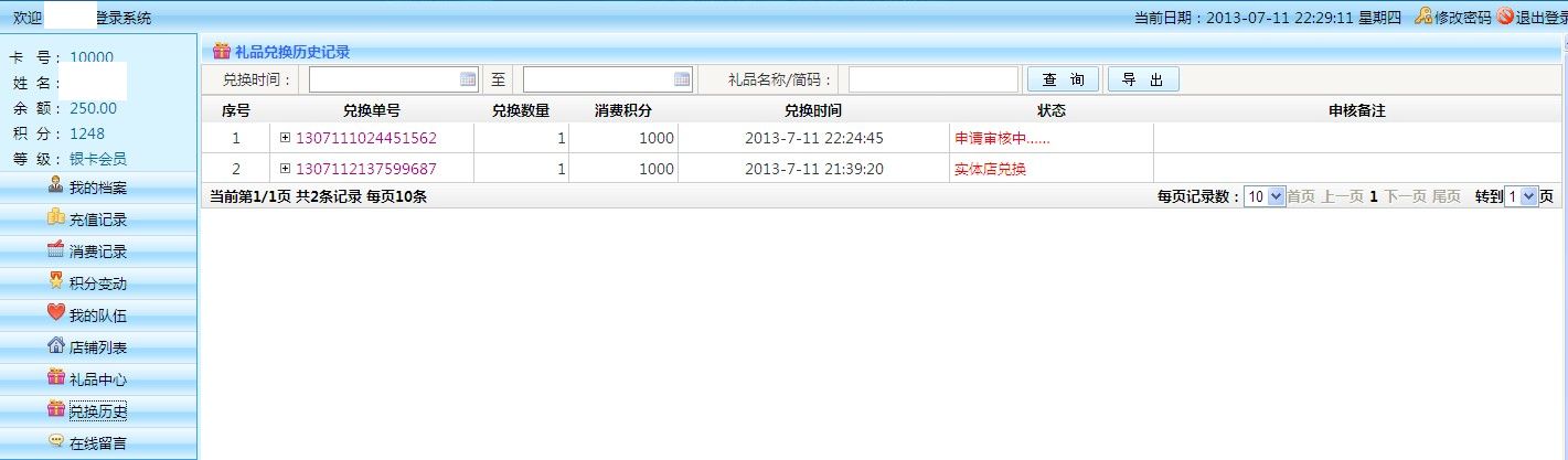 五通一卡通云會員管理系統(tǒng)兌換歷史