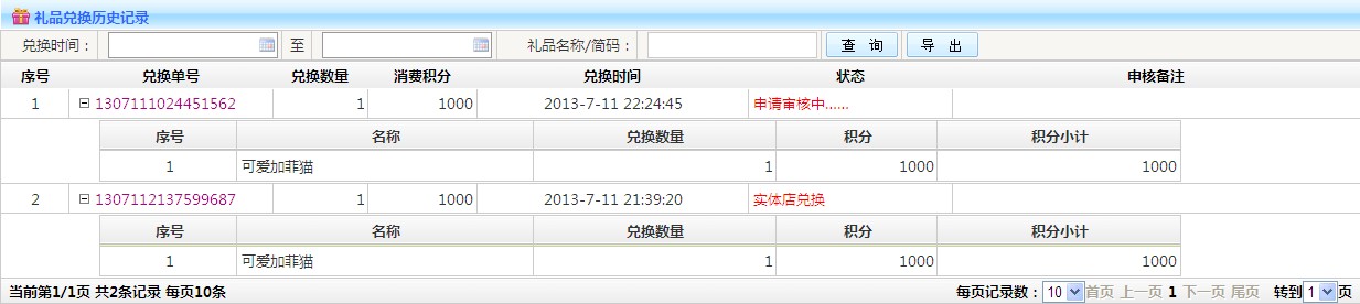 1.查詢:可以根據(jù)兌換單號 時間段 等條件查詢
