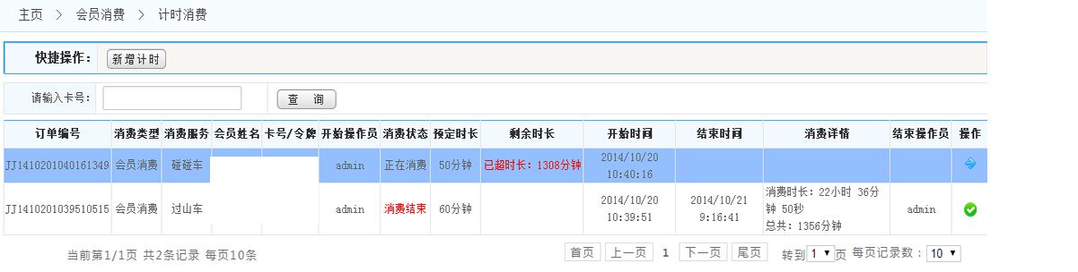 顯示:點(diǎn)擊菜單欄的計(jì)時(shí)消費(fèi),將進(jìn)入如下界面, 此頁(yè)面顯示的是計(jì)時(shí)消費(fèi)的詳細(xì)列表
