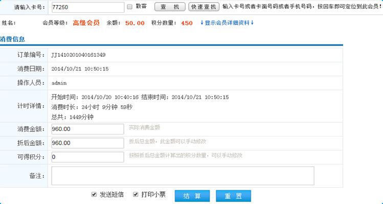如果會(huì)員有充時(shí)但是消費(fèi)時(shí)長(zhǎng)已經(jīng)超過(guò)充時(shí)時(shí)長(zhǎng),將會(huì)跳轉(zhuǎn)到結(jié)算界面(快速消費(fèi)界面)做結(jié)算;