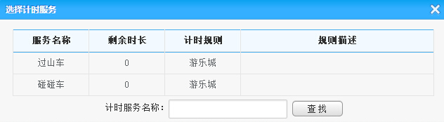通過(guò)刷卡或者是查找定位到會(huì)員信息,點(diǎn)擊選擇服務(wù)按鈕將彈出計(jì)時(shí)服務(wù)列表框,從其中選擇計(jì)時(shí)服務(wù),輸入預(yù)訂消費(fèi)時(shí)長(zhǎng)后(可選)點(diǎn)擊消費(fèi)開(kāi)始,便開(kāi)始計(jì)時(shí)消費(fèi),同時(shí)計(jì)時(shí)消費(fèi)列表也將添加此條消費(fèi)記錄,選擇計(jì)時(shí)服務(wù)對(duì)話框如下: