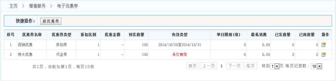 優(yōu)惠類(lèi)型:本系統(tǒng)提供兩種類(lèi)型的優(yōu)惠類(lèi)型分別為 折扣券和代金券
